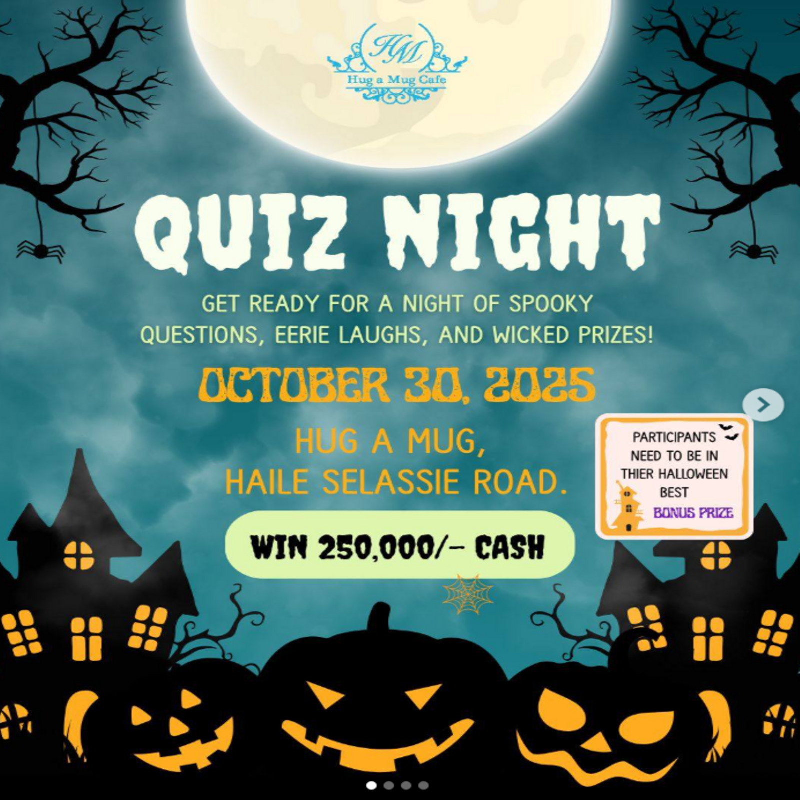 #QuizNight #HalloweenTrivia #HugAMugCafe #DarEsSalaamEvents #TriviaChallenge #FrightNight